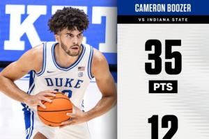 体育资讯11月15日讯 NCAA常规赛,杜克大学100-62大胜印第安纳州立大学。
