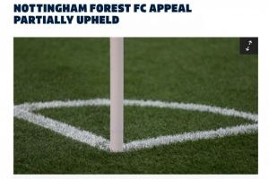 诺丁汉森林随后对处罚结果提起上诉。上诉委员会经过听证会后部分支持了上诉,并将俱乐部的罚款降至11.2万英镑。