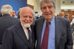 德佬也通过社媒晒出两人合照,并配文:"很荣幸能在'德桑克蒂斯(体育、尊重与法治奖)'的颁奖典礼上,为迪诺-佐夫这样的伟大冠军颁奖。我没有忘记,佐夫除了是意大利足球的象征,还曾为那不勒斯效力了五年。"