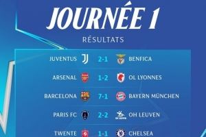 女足欧冠联赛阶段首轮赛果: